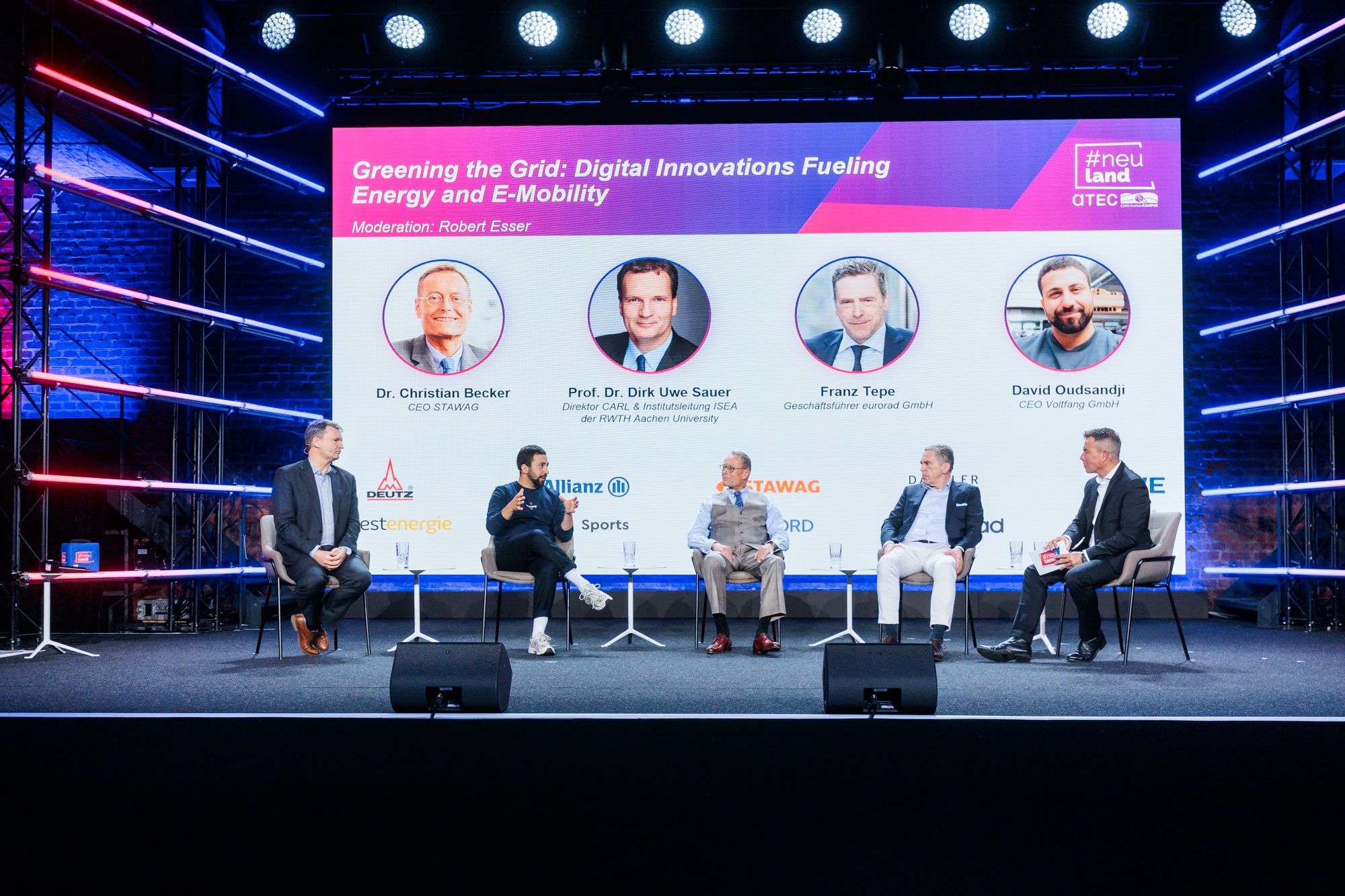 Vergangene Woche präsentierte sich eurorad auf dem Kongress #neuland in Aachen, einer Plattform für den branchenübergreifenden Austausch zu Innovation, Wirtschaft und Sport. Im Panel „Greening the Grid: Digital Innovations Fueling Energy and E-Mobility“ diskutierte der Geschäftsführer Franz Tepe von eurorad gemeinsam mit Dr. Christian Becker von STAWAG, Prof. Dr. Dirk Uwe Sauer von CARL RWTH Aachen und David Oudsandji von Voltfang.